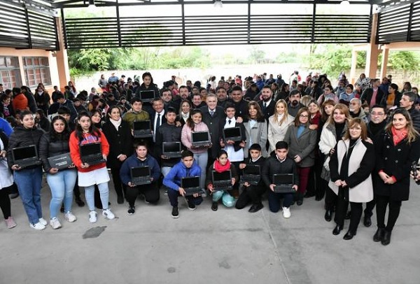 Estudiantes de la Escuela Secundaria de Los Aguirres, tendrán desde hoy mayor acceso a contenidos educativos mediante las 170 netbooks que recibieron de manos del gobernador, Osvaldo Jaldo.