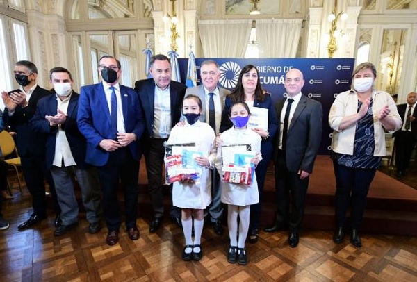En ese marco, el Gobernador realizó la entrega simbólica de 100 kits a alumnos de las escuelas 9 de Julio (nivel inicial), Bernardino Rivadavia (primaria) y San Martín (primaria); a representantes de gremios y organizaciones sociales que brindan terminalidad educativa y trabajan con sectores vulnerables, como el Movimiento Dignidad y Confluencia, Somos Barrios de Pie, Sivara (Ambulantes), Corriente 17 de Agosto, Movimiento Tucumán en Marcha, UPSRA (Personal de Seguridad), Movimiento Evita, SOEM (Empleados Municipales – Capital), SIVENDIA (Canillitas) y SPT (Peones de Taxis).