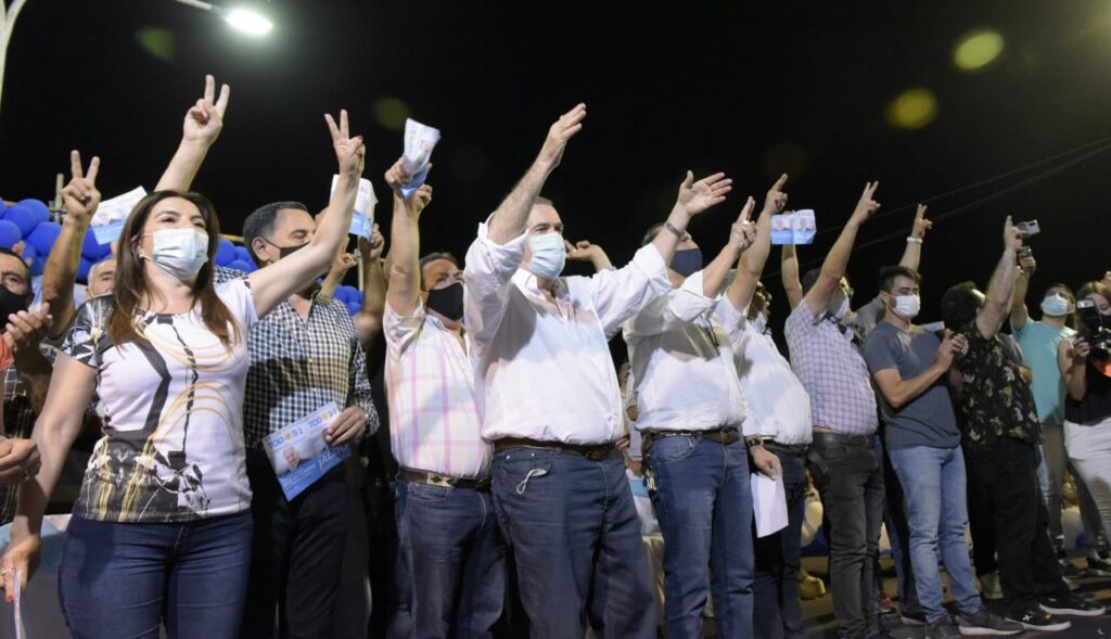 El vicegobernador Osvaldo Jaldo encabezó un acto con más de 6.000 personas en Simoca, donde estuvo acompañado por las precandidatas de su espacio, Gladys Medina, Patricia Lizárraga, Nancy Bulacio y Maia Martínez. Jaldo entró montado en caballo junto a los gauchos del lugar y puso el énfasis en los problemas de desempleo y la inacción del Instituto de la Vivienda del gobierno de Juan Manzur.