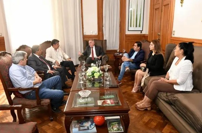 Del encuentro también fueron parte el vicegobernador, Miguel Acevedo; el presidente subrogante de la Legislatura, Sergio Mansilla y el ministro del Interior, Darío Monteros.