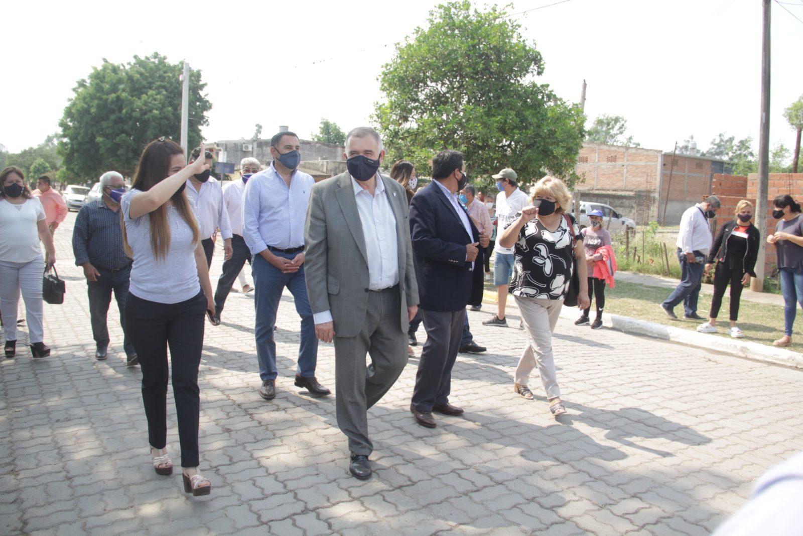 El vicegobernador, acompañado por el intendente Darío Monteros, dejó inaugurados 400 metros de pavimento lineal en el barrio La Milagrosa.