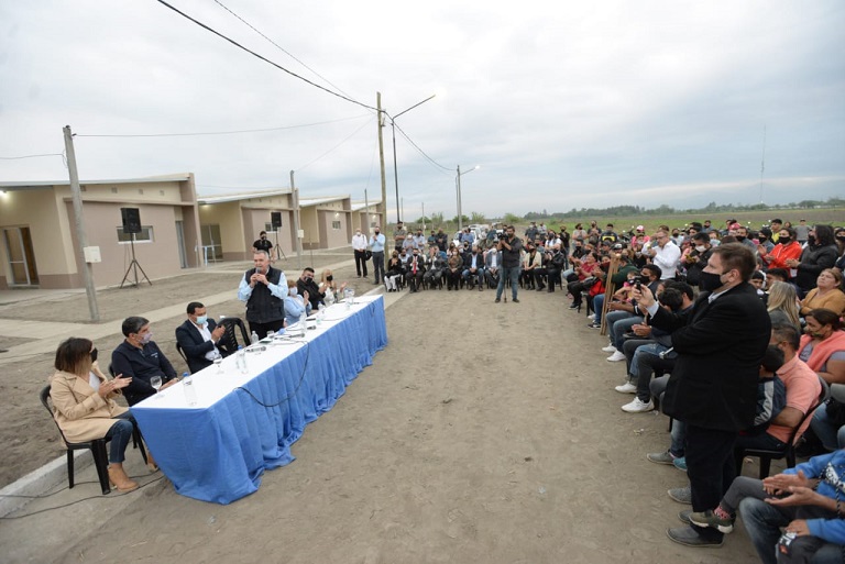 El gobernador Osvaldo Jaldo, acompañado del vicepresidente de la legislatura Regino Amado, la secretaria general de la gobernación, Silvia Pérez, el ministro del interior, Miguel Acevedo, la titular del IPVyDU Stella Maris Córdoba, el intendente Marcelo Herrera, hicieron entrega de viviendas a familias de esta ciudad.