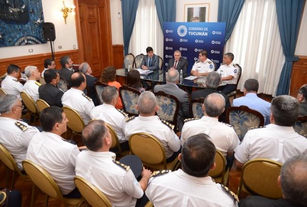 El gobernador, Osvaldo Jaldo, reunió esta mañana en su despacho de Casa de Gobierno a la plana mayor de la Policía de Tucumán y autoridades del Ministerio de Seguridad para realizar un balance sobre los operativos preventivos, de narcomenudeo, allanamientos y control de fronteras en los primeros 11 días de su gestión.
