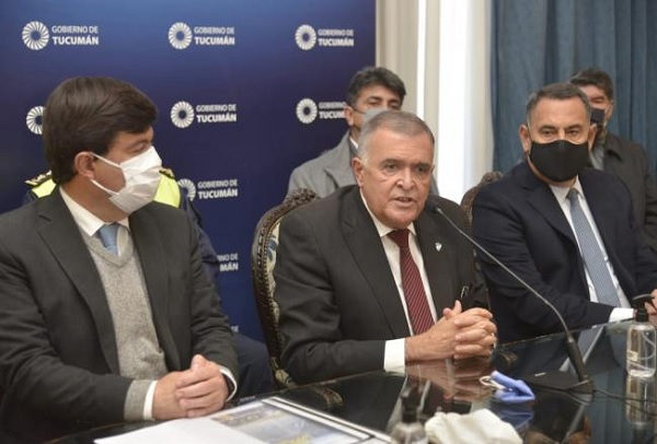 Así lo hizo el Gobernador durante una conferencia de prensa donde fue acompañado por la secretaria general de la Gobernación, Silvia Pérez y los ministros Eugenio Agüero Gamboa (Seguridad), Lorena Málaga (Desarrollo Social), Álvaro Simón Padrós (Desarrollo Productivo), Luis Medina Ruiz (Salud), Federico Nazur (Fiscal de Estado), Fabián Soria (Obras y Servicios Públicos) y Miguel Acevedo (Interior). También estuvo presente el vicepresidente de la Legislatura, Regino Amado; el jefe y subjefe de la Policía, Julio Fernández y Sergio Sobrecasas; el secretario de Seguridad, Luis Ibáñez; el subsecretario de Seguridad, José Rolando Gómez; y Jorge Nacusse, director general de la Digredrop.