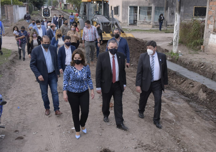 El vicegobernador Osvaldo Jaldo, junto al presidente subrogante de la H. Legislatura, Regino Amado, acompañaron al intendente Aldo Salomón y la legisladora Graciela Gutiérrez a recorrer obras de urbanización que se realizan en barrio Santa Inés, que comprenden cordón cuneta y pavimento articulado, mejorando dicha zona y también a otros barrios como Rincón del Este, CGT y Los Alamos.