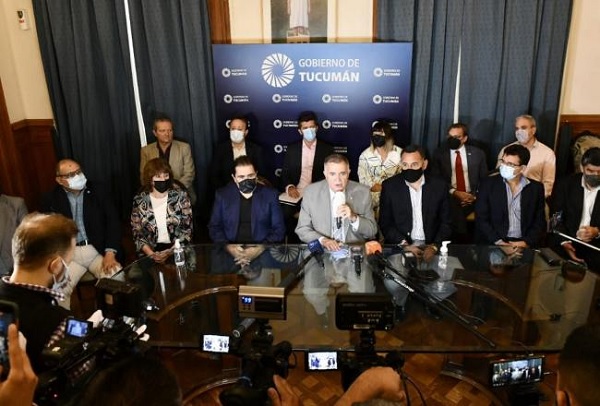 Durante la rueda de prensa el Gobernador estuvo acompañado por el presidente de la Legislatura, Sergio Mansilla; el vicepresidente de esa Cámara, Regino Amado; la secretaria general de la Gobernación, Silvia Pérez; los ministros Eduardo Garvich (Economía), Gabriel Yedlin (Desarrollo Social), Eugenio Agüero Gamboa (Seguridad), Miguel Acevedo (Interior), Álvaro Simón Padrós (Desarrollo Productivo); el fiscal de Estado, Federico Nazur; el director de Vialidad de la Provincia, Ricardo Abad; el presidente de la Sociedad Aguas del Tucumán, Augusto Guraiib; el presidente del Ente Tucumán Turismo, Sebastián Giobellina; y el secretario de Bienestar Educativo, Marcelo Romero, en representación del ministro de Educación, Juan Pablo Lichtmajer.
