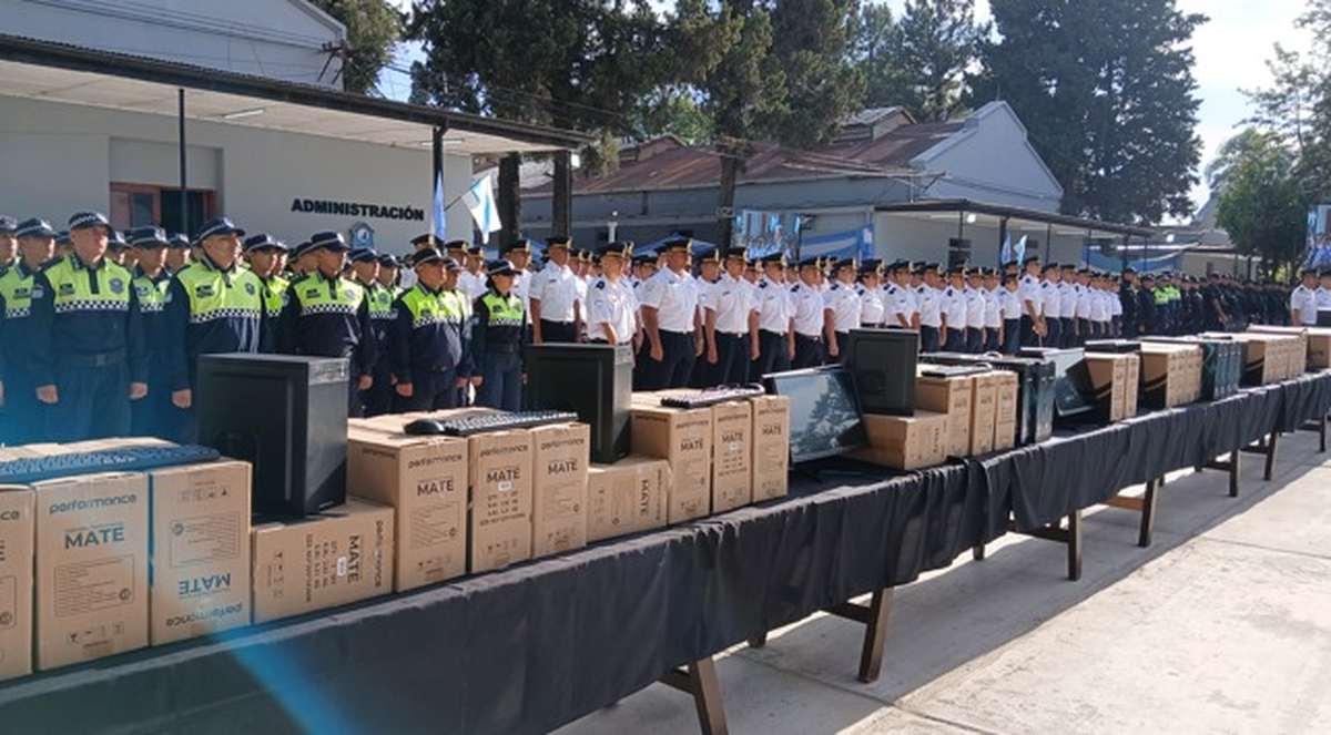 El mandatario mencionó avances en materia de seguridad. Indicó: “esta es la policía que en dos años bajó los homicidios un 50%; esta es la policía que bajó los delitos un 30%; esta es la policía reconocida a nivel nacional por la actual ministra de Seguridad de la Nación, Patricia Bullrich”. Señaló también que la fuerza fue destacada por su aporte a la reducción de índices delictivos a nivel federal.