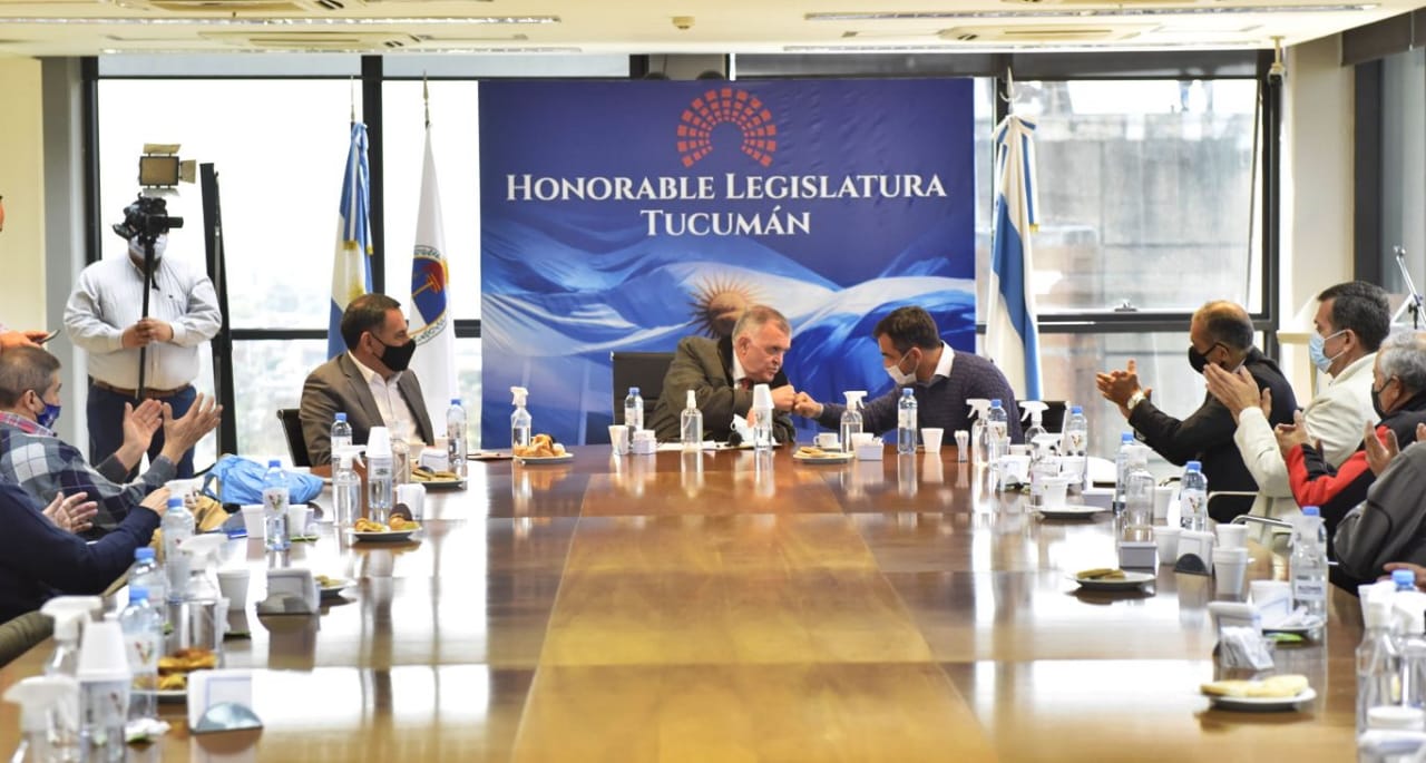 El vicegobernador Osvaldo Jaldo, junto al presidente subrogante Regino Amado, recibieron a la Unión de Federaciones Deportivas de Tucumán encabezada por Augusto Arquez y acompañado por más de 18 federaciones que nuclean al deporte tucumano, y que durante este encuentro recibieron un importante subsidio para mejorar las instalaciones y asi brindar y estar en mejores condiciones para seguir desarrollando sus actividades.