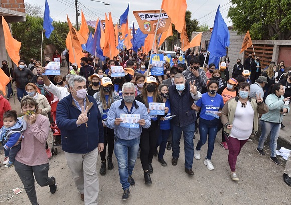 Jaldo, recorrió varias cuadras del barrio Diagonal Sur de la capital provincial, del que participaron también los legisladores Dante Loza, Tulio Caponio, y dirigentes de la zona.