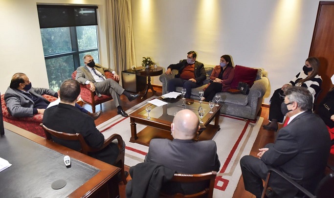 El vicegobernador Osvaldo Jaldo, junto al legislador Daniel Herrera, recibieron a autoridades del Colegio de Psicólogos y de la Federación de Entidades Profesionales Universitarias de Tucumán (FEPUT), encabezados por su presidente, Roberto González Marchetti, quienes pidieron el apoyo a un proyecto de ley que presentaron para la libre elección de profesionales en la provincia. Además solicitaron una colaboración para unas obras obras que realizan en la sede.