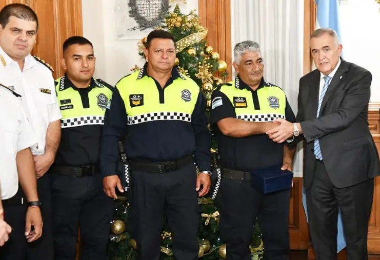 El gobernador Osvaldo Jaldo recibió a primera hora a los tres policías que participaron en el primer nacimiento del año, hecho que ocurrió el lunes pasado, cerca de las 2 en la comisaría de Los Puestos, una localidad ubicada en el Departamento de Leales, a unos 63 kilómetros al sureste de la Capital.
