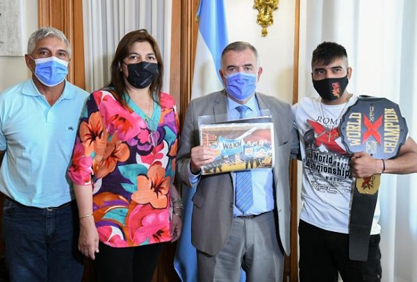 El gobernador Osvaldo Jaldo recibió esta mañana en su despacho a Abel Núñez, el joven oriundo de Alberdi que en octubre se consagró campeón mundial de kickboxing en Roma, Italia.