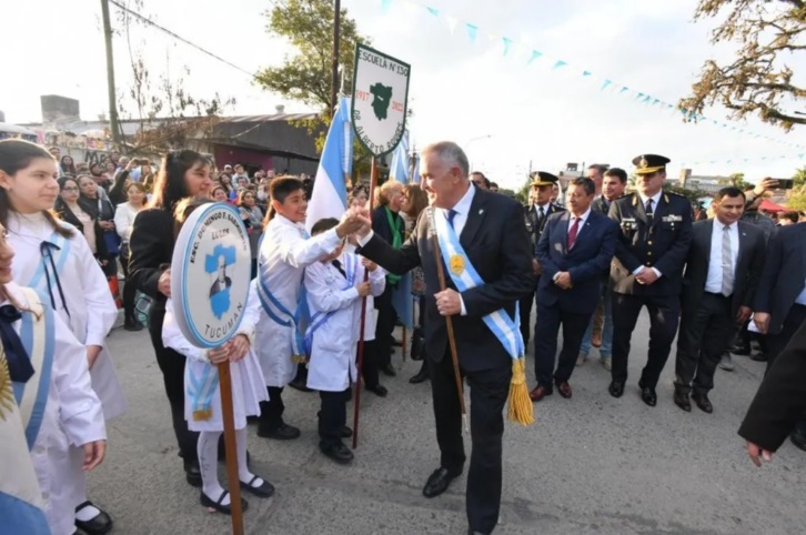 El gobernador, Osvaldo Jaldo, participó esta tarde en el acto y desfile por el Día de la Bandera, en Lules, en el que realizaron la promesa de lealtad alumnos de diferentes escuelas de la ciudad y el departamento,