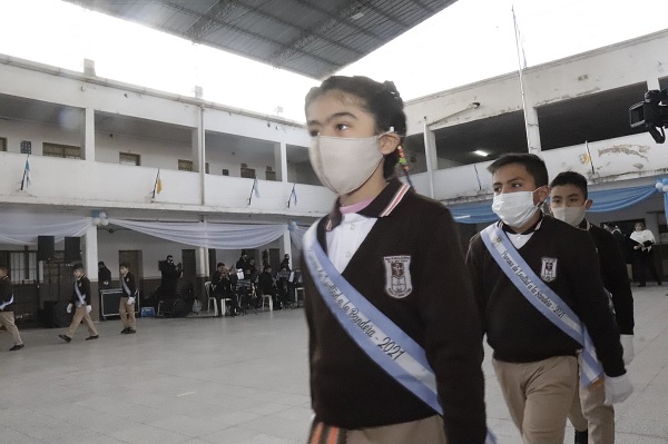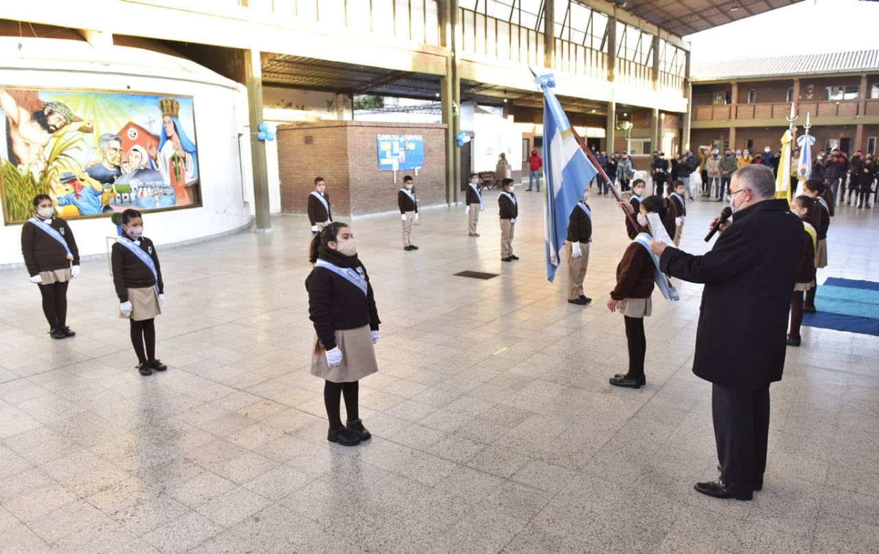 En la oportunidad Jaldo destacó:”Es un emotivo acto donde los chicos prometen lealtad a la bandera y lo que significa para ellos y sus familias, así que contento de participar y compartir junto a todos ellos y también queríamos obsequiar una bandera de ceremonia y una colaboración para que puedan seguir con la mejoras en el campo de deportes la escuela”.
