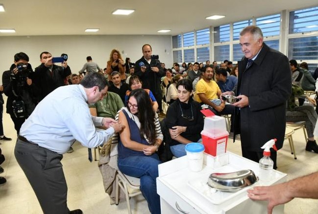 El gobernador Osvaldo Jaldo participó esta mañana de la campaña de vacunación conta el Dengue, donde esta vez comenzó con otro sector esencial, como son los docentes y personal auxiliar del área.