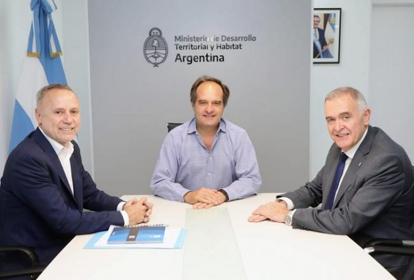 El gobernador, Osvaldo Jaldo, se reunió este miércoles en Capital Federal con el ministro de Desarrollo Territorial y Hábitat, Santiago Maggiotti; y el secretario de Desarrollo Territorial, Hugo Cabral, para firmar un convenio que permitirá el financiamiento, a través del Banco Internacional de Reconstrucción y Fomento (BIRF), de proyectos de mejoramiento integral del hábitat en distintas localidades de la provincia.