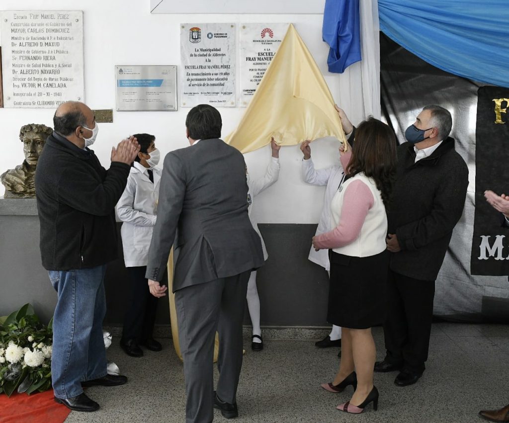 El Vicegobernador, CPN Osvaldo Jaldo, junto al Gobernador, Dr. Juan Manzur, participaron del descubrimiento de placas por el 150 aniversario de la Escuela Fray Manuel Pérez de la ciudad de Alderetes.