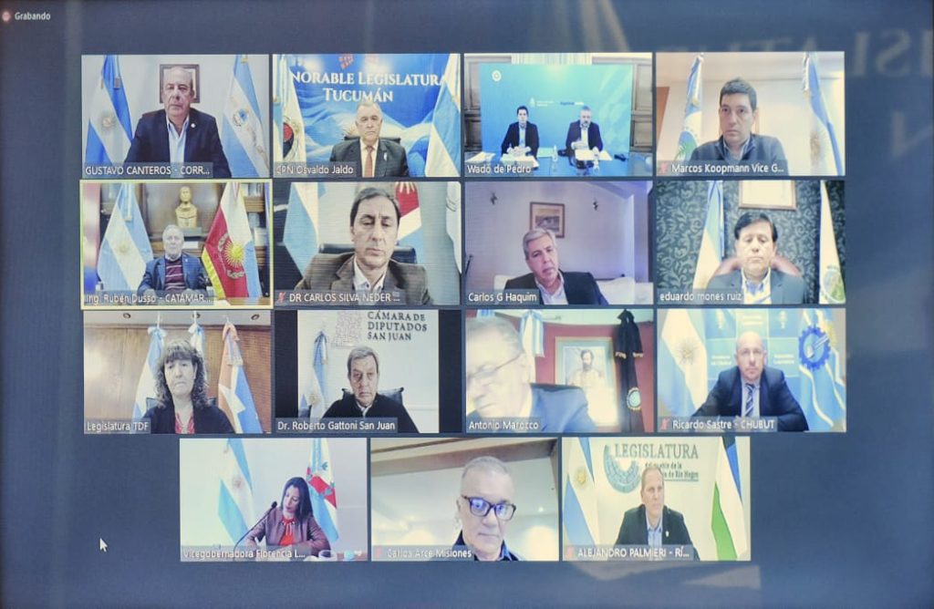 El vicegobernador Osvaldo Jaldo, participó de una video conferencia, junto al ministro del interior Eduardo Wado de Pedro, el vice ministro del interior José Lepere, los vicegobernadores de las provincias de Jujuy, Salta, Catamarca, Santiago del Estero, Corrientes, Misiones, La Rioja, San Juan, San Luis, Río Negro, Neuquén, Chubut Tierra del Fuego, para seguir profundizando en temas relacionados a la pandemia que aqueja al país, y como trabajar en conjunto y de avanzar en la regionalización de las provincias, cómo ya se ha realizado en el noroeste, con el Parlamento del NOA, y seguir aportando desde los vicegobernadores y los poderes legislativos en ayudar y acompañar a los gobernadores, además luego de la exposición del vicegobernador de Tucumán, de regionalizar el país, a lo cual el ministro Wado de Pedro, tomo con beneplácito y propuso elevar al presidente la creación de una sin secretaria de regionalización.