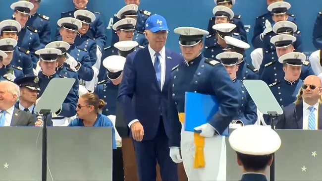 Un momento de preocupación se vivió este jueves por la tarde durante el acto de graduación de la Academia de la Fuerza Aérea de Estados Unidos. El presidente Joe Biden participó de la ceremonia y, luego de su intervención ante los presentes, sufrió una caída arriba del escenario.