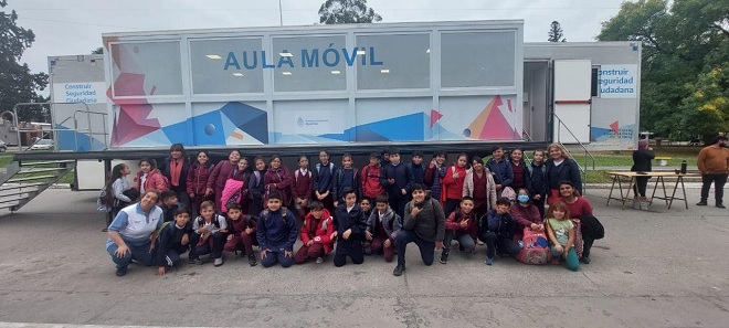 Por el día mundial del Acoso Escolar, alumnos del nivel primario y secundario del Instituto San Pedro y los alumnos de 4to, 5to y 6to de la Escuela Municipal Nueva Argentina, visitiraron los Trailers de oficinas móviles que se encuentran en Plaza Miguel de Azcuenaga.