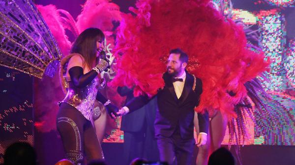 El diputado José Ottavis se calzó las plumas en el espectáculo de su amiga Moria Casán.