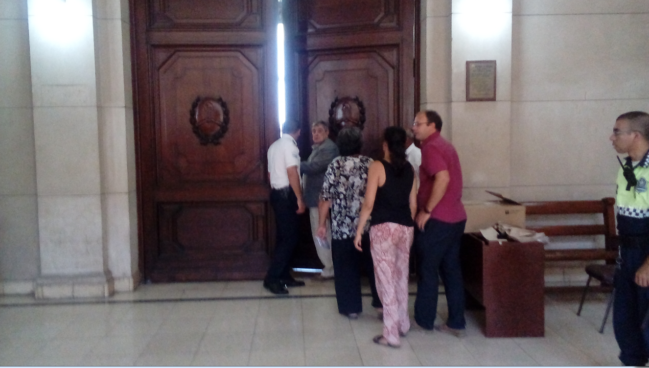 Todo comenzó con la defensa de uno de los acusados (Roberto Luis Gómez), aludiendo a la incompetencia del juicio en el fuero provincial, lo que fue rechazado tanto por la querella como por los fiscales del caso, aunque el tribunal, presidido por Carlos Caramuti, decidió pasar a un cuarto intermedio para tratar la cuestión.