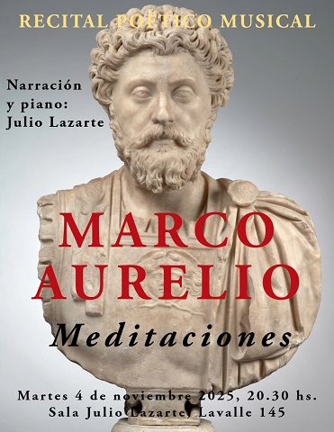 • “Meditaciones”, de Marco Aurelio, a las 20.30, en Sala Lazarte en Lavalle 145, San Miguel de Tucumán. Narración y piano: Maestro Julio Lazarte.