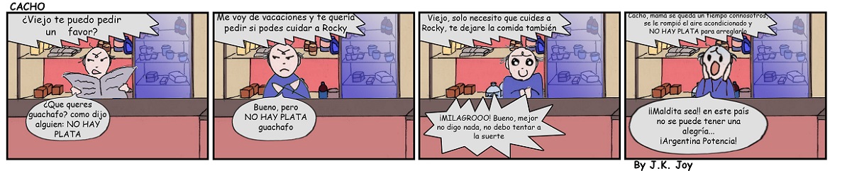 Actualidad La alegría le duro muy poco a Cacho 23 enero, 2024 Compartir en Facebook Compartir en Twitter 🔊 Escuchar la entrada El personaje principal de la tira cómica de Diario Cuarto Poder , Cacho, Creado por J.K. Joy ,cuando todo parece ir bien , nunca falta una noticia terrible. Además de que NO HAY PLATA. Comments Comentarios