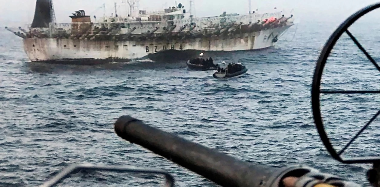 El ARA “Bouchard” durante la persecución del pesquero chino “Hong Pu 16” en el Mar Argentino. Foto Armada Argentina