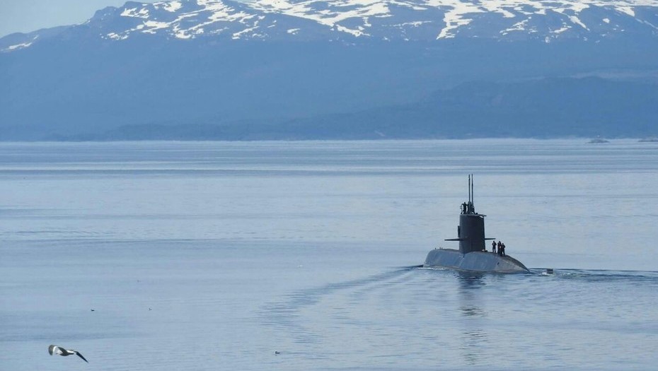Una de las últimas imágenes del submarino ARA San Juan, en el canal de Beagle el 8 de noviembre. (Martín Otero)