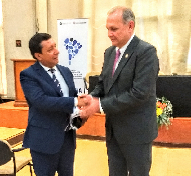 Miguel Vázquez y Rodolfo Di Pinto con el intendente de La Paz, Bolivia.