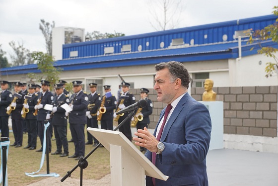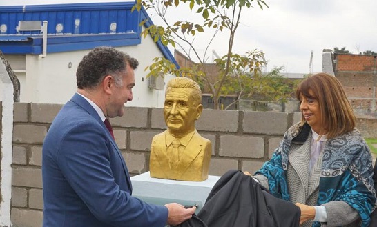 Actualidad / Noticias. El secretario de Gobierno y Relaciones Institucionales de la provincia, Raúl Albarracín, habilitó junto a la ministra de Educación, Susana Montaldo, un mástil, murales y un busto en honor al ex presidente argentino en la escuela que lleva su nombre.