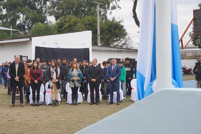 Durante el acto se inauguró el mástil principal del establecimiento, que permitirá que la bandera nacional acompañe diariamente el ingreso de la comunidad educativa, como símbolo de identidad, unidad y compromiso patrio.