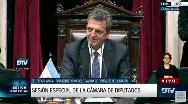 La sesión especial fue solicitada por el Frente de Todos. Sergio Massa presentó su renuncia formal a la Honorable Cámara y asumirá como presidenta del cuerpo Cecilia Moreau.