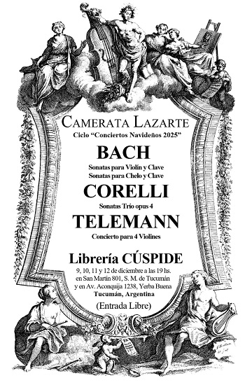 Letras de Fuego / Espectáculos / Noticias. La Camerata Lazarte, con la dirección de su creador, el Maestro Julio Lazarte, realizará su Ciclo “Conciertos Navideños 2025” en la conocida Librería Cúspide, tanto en sus sedes de Capital como de Yerba Buena.