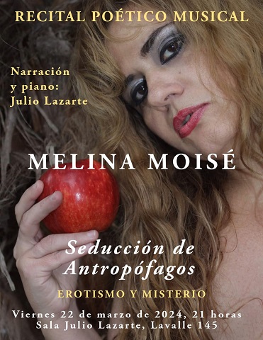 Letras de Fuego / Noticias. Mañana, viernes 22, en el Ciclo de Otoño de los recitales poético musicales de la Camerata Lazarte, se presentará “De rojo carmesí” y “Con aroma a almendras”, de Melina Moisé, en la voz del Maestro Julio Lazarte.