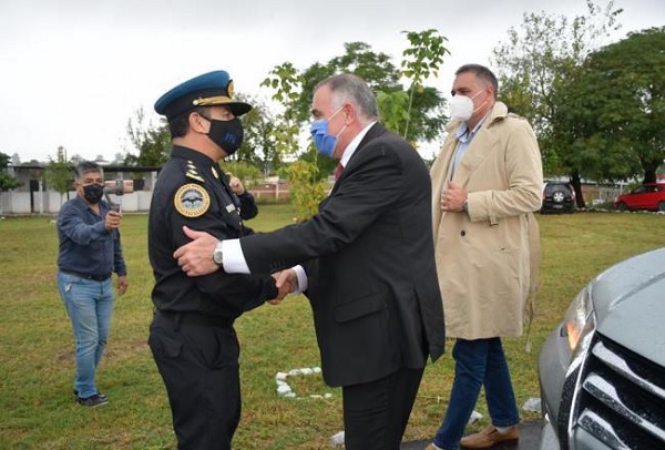 Acompañaron al primer mandatario, el vicepresidente de la Legislatura, Regino Amado, legisladora Marta Najar, el intendente Carlos Najar, el jefe agencia regional de la Policía Federal, Walter Bernal, el Jefe de Policía, Julio Fernández, el sub Jefe, Sergio Sobrecasas, el secretario de Seguridad, Luis Ibañez, el sub secretario del área, Rolando Gómez, el director servicios penitenciarios Felix Concha, el sub secretario de asuntos penitenciarios Juan Esteban Zaracho y el secretario de Grandes Comunas, Alberto Olea, entre otros.