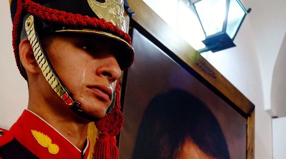Durante un acto oficial por el 206 aniversario de la batalla de San Lorenzo, un granadero no pudo contener las lágrimas ante un retrato del Padre de la Patria.