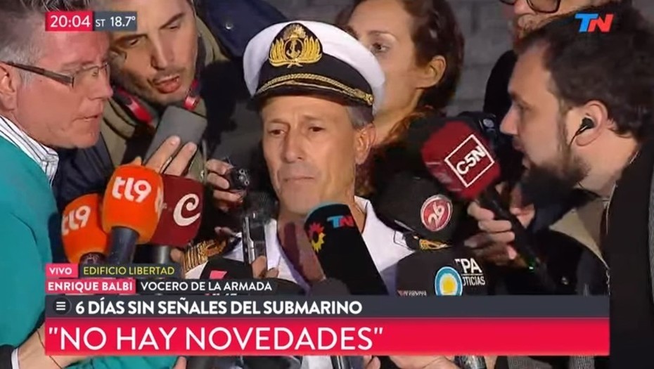 Antes, Balbi había advertido que “no hay novedades” en el operativo de rescate de la embarcación y sus 44 tripulantes que llevan seis días perdidos en el Atlántico Sur.