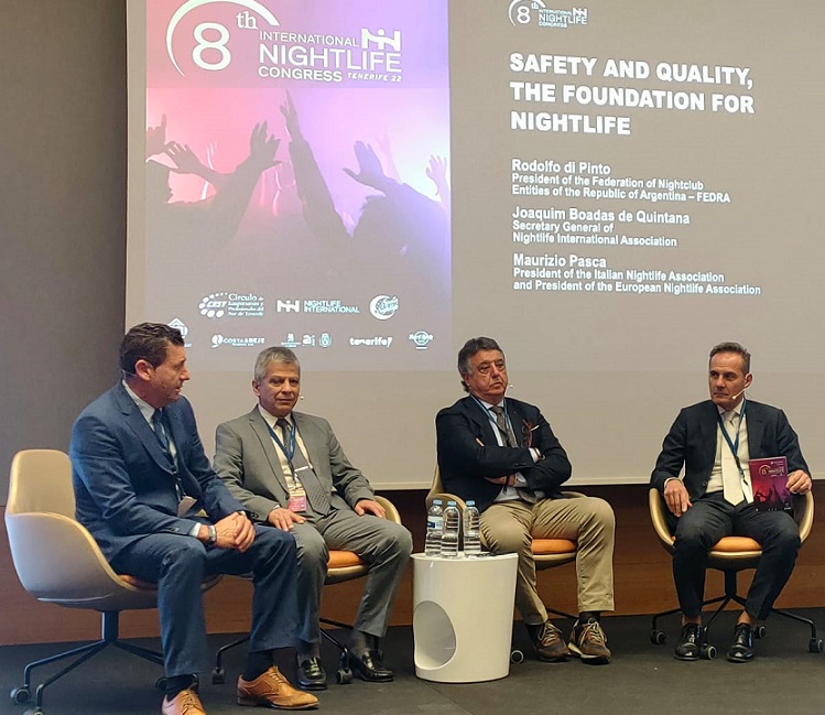 El presidente de la federación argentina, el tucumano Rodolfo Di Pinto, expuso en una Mesa Redonda mundial sobre “La seguridad y la calidad, como pilares del ocio nocturno”, compartiendo el panel con el secretario general de INA, Joaquim Boadas de Quintana y el presidente de la asociación italiana SILB y a la vez presidente de la Asociación Europea de Ocio Nocturno ENA, Maurizio Pasca.
