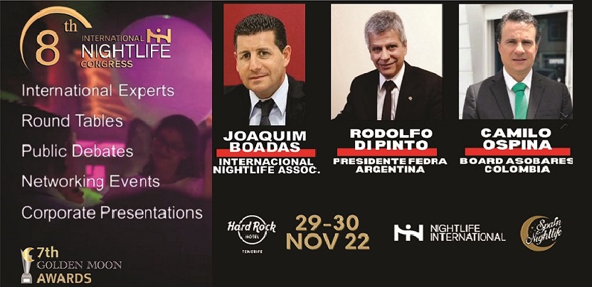 El segundo evento: el 8° Congreso Internacional de Ocio Nocturno, es organizado por la International Nightlife Association (INA) y tendrá lugar en el Hard Rock Hotel Tenerife, Islas Canarias (España), el 29 y 30 de noviembre.