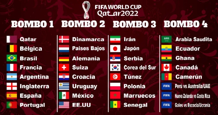 • BOMBO 1: Qatar – Brasil -Bélgica – Francia – Argentina – Inglaterra – España – Portugal