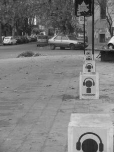 El logo de PHI tenía una cabeza con auriculares: minimalista, digital. Esa poca información tomaba sentido ubicada entre todo lo otro. Entre ojos rojos o lenguas coloridas gritando, entre el tránsito y las tiendas vendiendo lo que sea, había alguien que guardaba su secreto frío y se refugiaba la mente en otros sonidos.