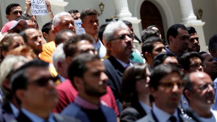 Tras la concentración opositora del sábado, los diputados de la MUD celebraron ayer una sesión extraordinaria. “Hacemos un llamado a la sociedad civil a movilizarse este martes para apoyarnos en la destitución de esos magistrados”, dijo el vice presidente del Parlamento, Freddy Guevara, en referencia a los jueces que fallaron contra el legislativo.