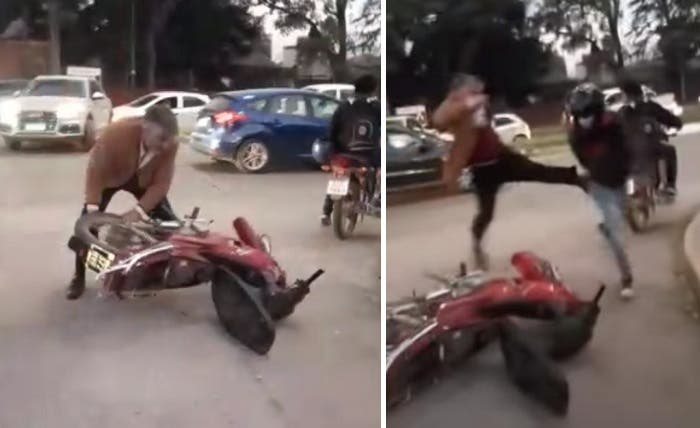 La escena es desopilante; parece sacada de un sketch cómico de la serie humorística de Benny Hill: Un hombre alto, de saco y zapatos, corretea a un joven alrededor de una moto para pegarle. Luego alza un rodado que está tirado en la calle y lo arroja de golpe al suelo. Todo podría ser un caso más de violencia callejera sino fuera que el hombre violento resultó ser nada más y nada menos que un representante del Poder Judicial de la Provincia, el juez Orlando Velio Stoyanoff Isas, a cargo del Juzgado Civil en Familia y Sucesiones de IV Nominación.