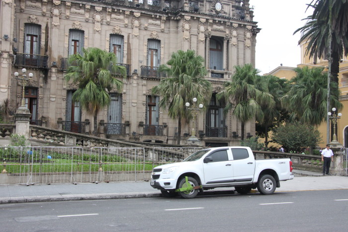 Agentes de tránsito recorrieron las calles que rodean el paseo público y colocaron cepos a vehículos del Gobierno provincial. “Se le ha puesto aproximadamente el cepo a diez vehículos de uso oficial y se ha despejado la zona de este paseo público. Diariamente los vehículos estacionan en lugares que sólo están habilitados para el ascenso y descenso de estudiantes de nivel primario”, explicó el subsecretario de la Unidad Operativa de Tránsito y Transporte, Enrique Romero. Los operativos se realizan todos los días y continuarán en diferentes partes de la ciudad, informó Romero.