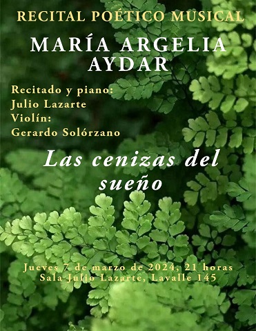 De este modo, este jueves 7 de marzo, Lazarte le pondrá voz con su característico recitado, al poemario “Las cenizas del sueño”, de María Argelia Aydar. La cita será, a las 21, en la Sala Lazarte, ubicada en Lavalle 145 de San Miguel de Tucumán.