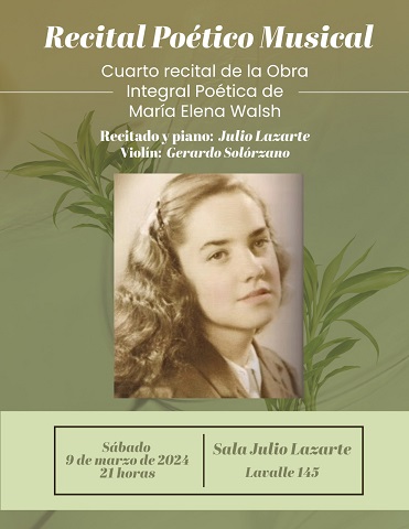 El sábado 9 de marzo tendrá lugar el cuarto recital de la obra integral poética de María Elena Walsh, que se viene realizando con gran repercusión debido al interés que han despertado aspectos poco conocidos de su legado escrito.