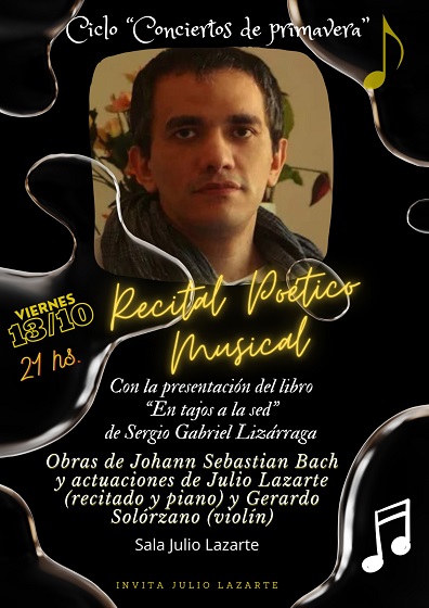 Letras de Fuego / Noticias. La Camerata Lazarte inicia su Ciclo de Conciertos de Primavera con un recital poético musical que tendrá como protagonistas a la poesía del autor taficeño Sergio Lizárraga y antológicas composiciones de Johann Sebastian Bach.