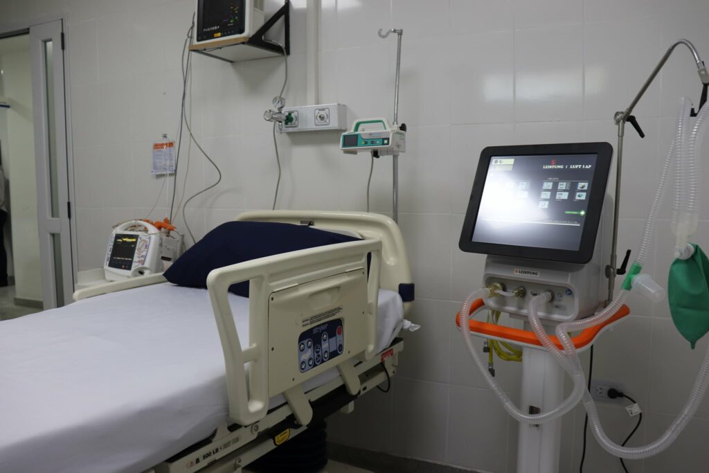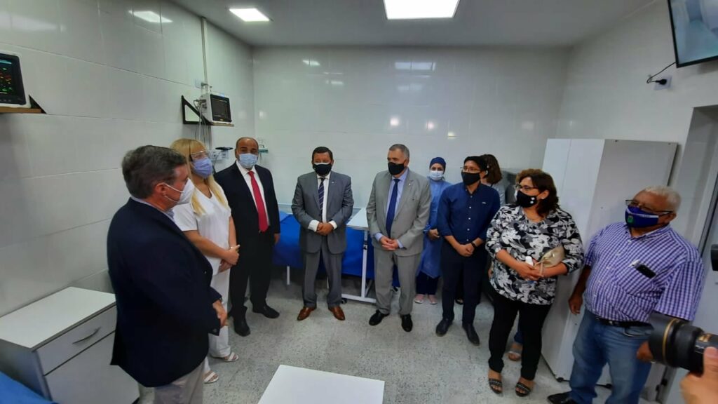 La ampliación y las mejoras realizadas en la Policlínica Municipal consiste en una sala de espera climatizada y cámara de control térmico automática para la prevención del Covid-19, una sala de Shock Room equipada con respirador automático y cardiodesfibrilador con marcapaso extracorpóreo.